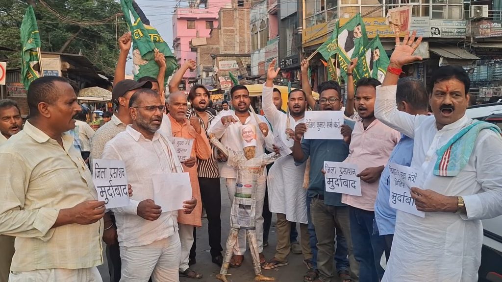 हाजीपुर :युवा राजद द्वारा आयोजित पुतला दहन और आक्रोश मार्च में नीतीश कुमार और वैशाली प्रशासन के खिलाफ कड़ा विरोध जताया गया। कार्यक्रम का नेतृत्व युवा राजद के प्रदेश महासचिव निर्दोष यादव ने किया।