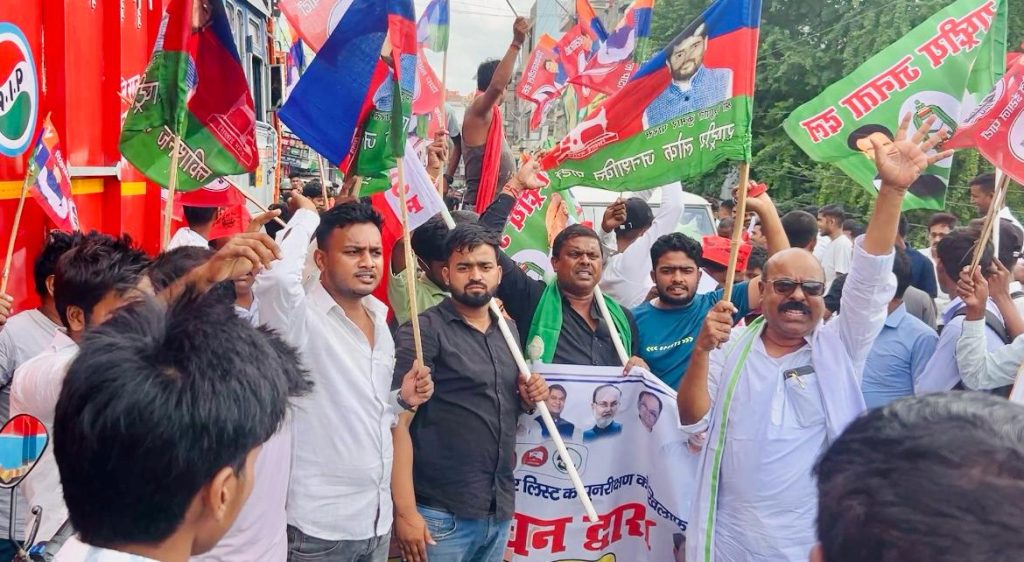 ट्रेड यूनियन के द्वारा घोषित बुधवार को आम हड़ताल में महा गठबंधन के द्वारा मतदाता पुनरीक्षण के विरोध में चक्का जाम आंदोलन किया गया। महा गठबंधन के सभी दलों के कार्यकर्ता अपने-अपने झंडा बैनर लेकर सड़क पर उतरे और वाहनों की आवाजाही रोक दी।