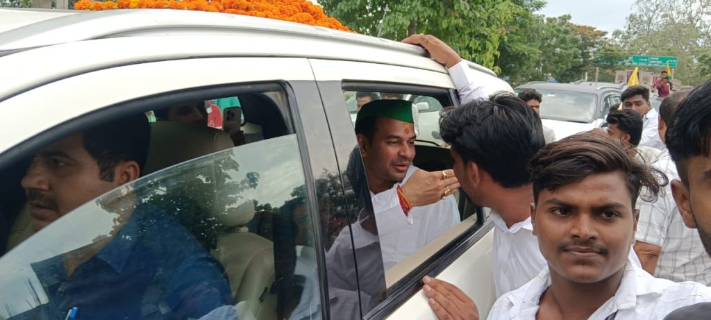 पूर्व स्वास्थ्य मंत्री और महुआ के पूर्व विधायक रहे लालू प्रसाद के बड़े बेटे तेज प्रताप यादव गुरुवार को महुआ पहुंचे। जहां उनके कार्यकर्ताओं ने आर्केस्ट्रा ट्राली के साथ गर्भजोशी से स्वागत किया। इस दौरान उन्होंने मीडिया से कहा कि जनता कहेगी तो वे महुआ से फिर विधानसभा के उम्मीदवार होंगे।