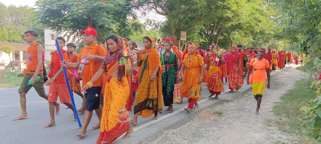पहलेजा धाम से दक्षिण वाहिनी गंगाजल लेकर कावड़िए सोनपुर, हाजीपुर, महुआ मोड़ से होकर सेंदुआरी, बेलकुंडा, बोतला चौक, रानीपोखर, कन्हौली होते हुए महुआ पहुंचे। वे महुआ ताजपुर मार्ग से होकर बाबा खगेश्वर नाथ धाम मुतलूपुर पूसा सहित विभिन्न शिवालयों पर सोमवारी को जलाभिषेक करेंगे। कांवड़ियों में महिला, युवतियां और बच्चे भी काफी संख्या में शामिल हैं। पहलेजा धाम से मुतलूपुर पूसा सबसे लंबी दूरी की यात्रा मानी जाती है। इसी के साथ बाबा द्रव्येश्वर नाथ धाम डभैच, शिव मंदिर बाजितपुर, सुक्की सहित विभिन्न शिवालयों के लिए भी कावड़िए पहुंचते हैं। रविवार को डाक कांवड़ियो की टोली निकलेगी। कांवड़ियों ने बताया कि इस महीने बारिश की जगह कड़ाके की धूप में जलती सड़क पर चलने में काफी कठिनाई हो रही है। कावड़ियों ने बताया कि सोमवार को वे बाबा दरबार में पहुंचेंगे और जलाभिषेक करेंगे। मौसम की बेरुखी के बावजूद उनमें शिव भक्ति का उत्साह चरम पर है। मालूम हो कि महुआ मार्ग से डाक कावड़ियों की भारी भीड़ विभिन्न शिवालयों के लिए जाती है।