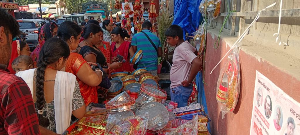 इधर पर्व को लेकर सुहागिनों में खासा उत्साह है। साथ ही पर्व को यादगार और शानदार बनाने के लिए उनके द्वारा हर एक एक समान की खरीदारी की जा रही है। यहां बाजार में महिलाओं ने पर्व को लेकर श्रृंगार प्रसाधन से लेकर हर एक एक समान की जमकर खरीदारी की। इधर महुआ बाजार के अलावा मंगरु चौक स्थित तिवारी जी के मेला में खरीदारी के लिए महिलाओं के भीड़ हुई। उन्होंने श्रृंगार प्रसाधन की दुकानों से जमकर खरीदारी की। यह पर्व सुहागिनें सुहाग की रक्षा के लिए 16 श्रृंगार में सज सवरकर करती हैं। दिनभर उपवास रख रात को चंद्रोदय होने के बाद पति और चांद का चलनी से दीदार कर व्रत का समापन करती है। इधर खरीदारी कर रही महिलाओं ने बताया कि यह पर्व सदा सुहागन रहने के लिए की जाती है। उनकी सुहाग बना रहे और घर में सुख समृद्धि आए इसके लिए उपवास रखती हैं।