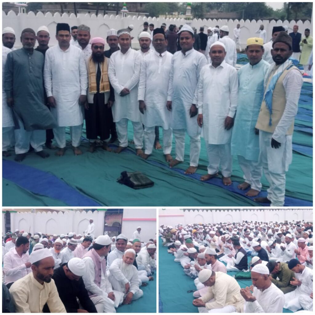 वैशाली : चेहरा कलां प्रखंड अंतर्गत शाहपुर खुर्द,जलालपुर बीरभान,काबिलपुर,मुहम्मदपुर स्थित ईदगाह में भाडी संख्या में हजरत मौलाना अकबर रजा अशरफी साहब के इमामत में मुसलमानों ने ईद-उल-फितर की नमाज अदा की और नमाज के बाद एक-दूसरे को गले लगाकर ईद की बधाई दी। इस अवसर पर मौलाना अकबर रजा अशरफी, एस डी ओ खुर्शीद अहमद जल संसाधन विभाग बिहार सरकार पटना, हजरत मौलाना इम्तियाज आदिल नदवी, इंजीनियर मंजर हसन इंडियन ऑयल, इंजीनियर रियाज अहमद आईटी सेल पातेपुर ब्लॉक, डॉ. नईमुद्दीन, अफजल अंसारी, अरशद अंसारी, खुर्शीद आलम, असलम अंसारी, एलजेपी नेता नियाजुल हक ने संयुक्त रूप से कहा कि ईद नफरत को मिटाती है और प्यार का इजहार करती है तथा प्रेम का संदेश हमेशा के लिए देती है। इनके अलावा मुफ्ती मोहम्मद मुस्तकीम रिजवी, पूर्व उपसरपंच अब्दुल कलाम अंसारी, डॉ. मोहम्मद फिरोज, डॉ. मोहम्मद रफी, इंजीनियर आसिफ रजा, इंजीनियर खालिद अनवर, इंजीनियर मोहम्मद जहीर, मास्टर अब्दुल हलीम, मास्टर अब्दुल रहीम, मास्टर शहाबुद्दीन, डॉ. शहबाज, मौलाना शमीम अहमद शम्सी, सेठ जुबैर अंसारी, रोजीद अंसारी, बाबा नईम, जमशेद आलम, चुन्नु पटेल, दीनी खादिम अब्दुल कलाम आदि समेत सैकड़ों की संख्या में ईद की नमाज अदा की।