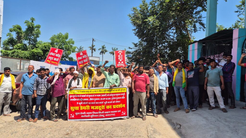सैंकड़ों मजदूरों ने सुधा डेयरी प्रबंधन से 9 सूत्री मांगें पूरी करने एवं 4 लेबर कोड के खिलाफ किया आक्रोशपूर्ण प्रदर्शन