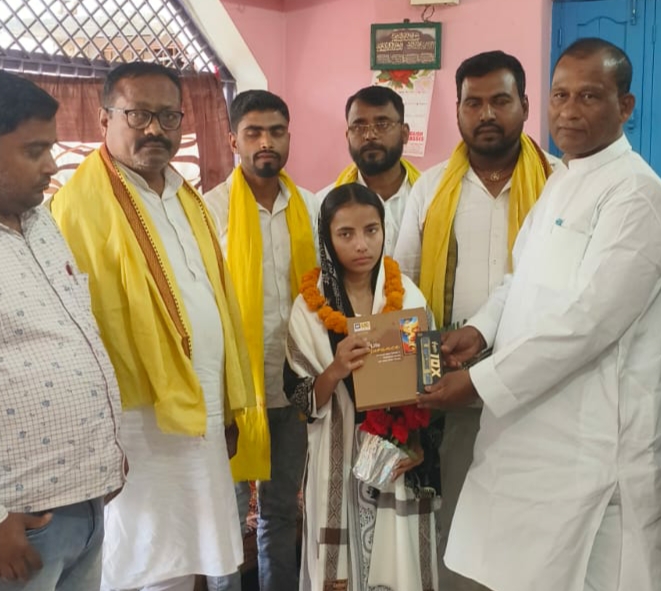 जन सुराज पार्टी के पूर्व प्रत्याशी इंद्रजीत प्रधान ने मैट्रिक टॉपर शबरीन परवीन को किया सम्मानित