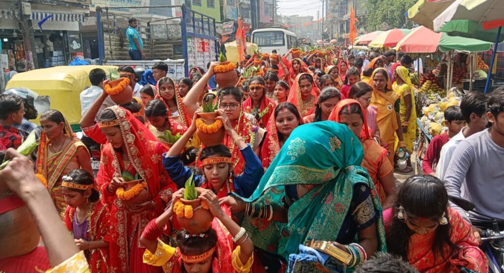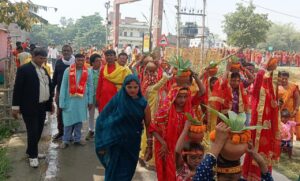 ➤ 10 किमी की पदयात्रा: महिलाएं माथे पर गंगाजल से भरा कलश लेकर यज्ञस्थल से महुआ के वाया नदी तट कालीघाट पहुंचीं। वहां पहलेजा धाम से मंगाए गए गंगाजल को मंत्रोच्चार के बीच कलश में भरा गया। इसके बाद नगर भ्रमण करते हुए वापस यज्ञस्थल पहुंचकर कलश स्थापित किया गया।