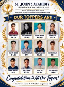 सीबीएसई 10वीं में सेंट जॉन्स एकेडमी के विद्यार्थियों ने रचा इतिहास